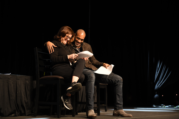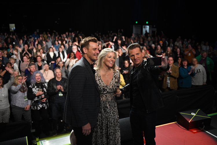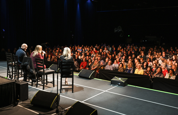 The stars chat with a room full of happy...