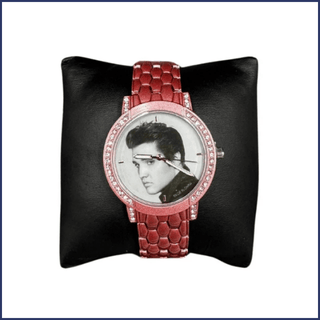 Elvis 50’s Portrait Watch Surprise the Elvis fan in your life with the 50’s Portrait Watch. Featuring a pink coated metal band and a classic 1950s image of Elvis, this stylish timepiece is both fashionable and nostalgic. It’s the perfect gift for anyone who wants to carry a touch of the king’s timeless style wherever they go.