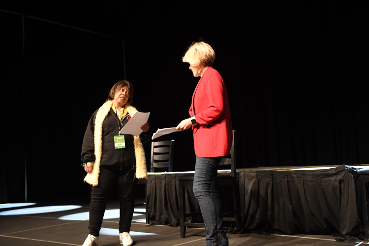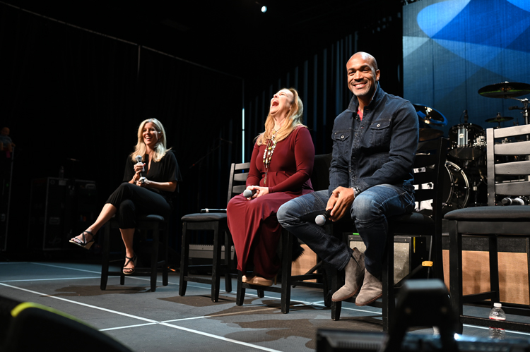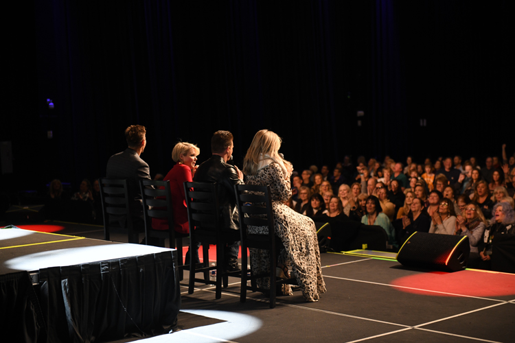 The stars chat with a room full of happy...